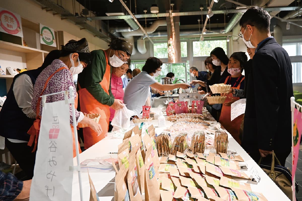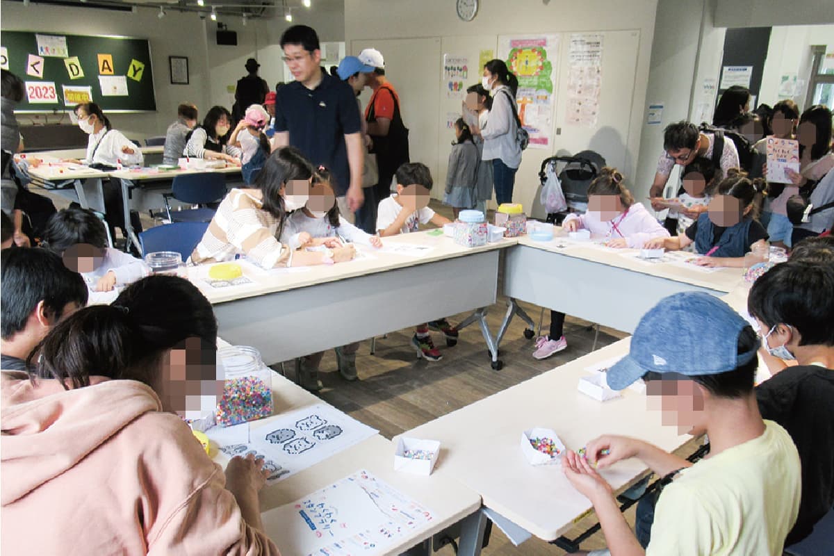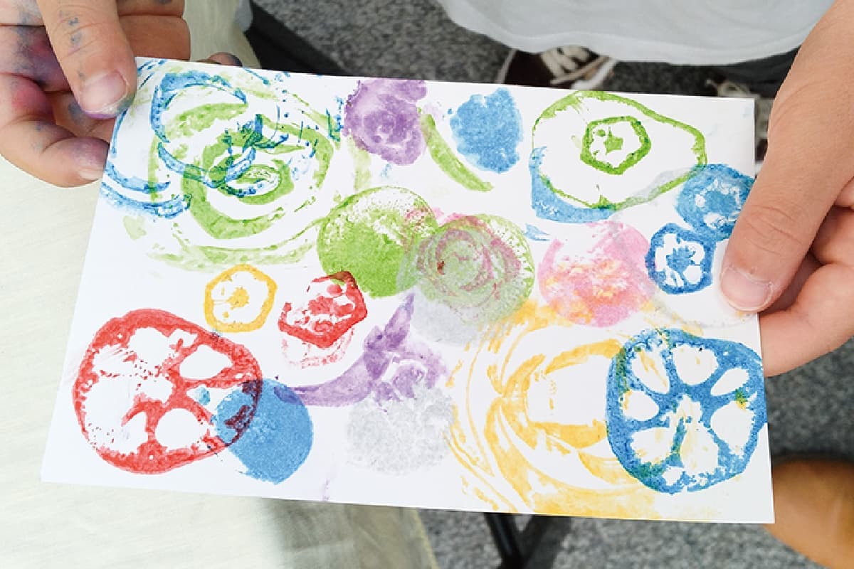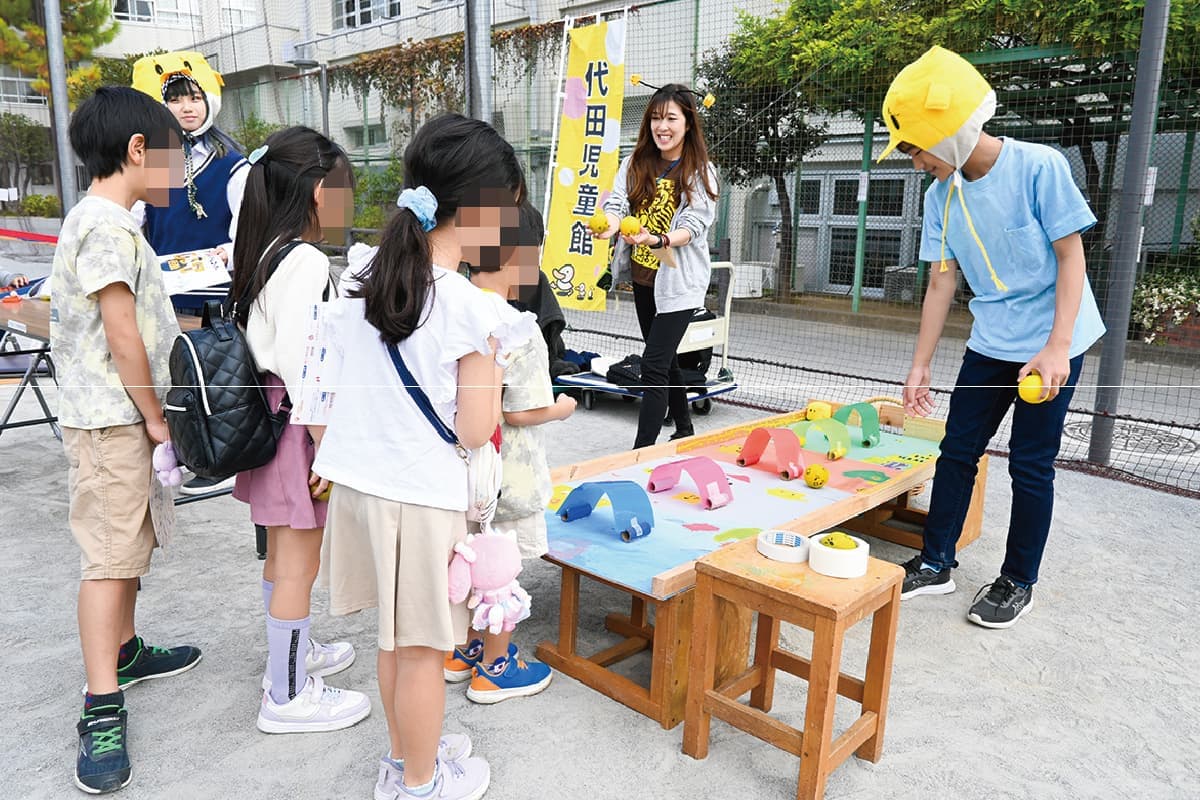 また、この日は守山保育園の園庭も一般開放されたほか、屋外では生野菜を使ったスタンプコーナー、代田児童館の中高生によるゲームコーナーもありました。そのほか、ものづくりや音楽体験、展示コーナー、カフェなど参加型から自由滞在型まで25の企画があり、テラスのあちこちに笑顔があふれました。