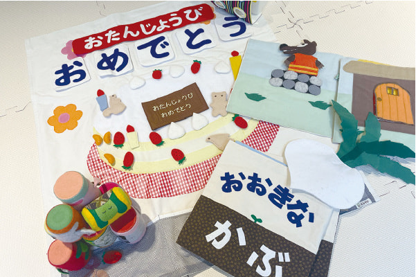 TOY工房どんぐりによる手作りおもちゃは季節ごとに変わります。赤ちゃんが遊べる場があり、子育て経験者に育児相談ができます。抱っこしている間にママはお茶でゆっくりしてください。