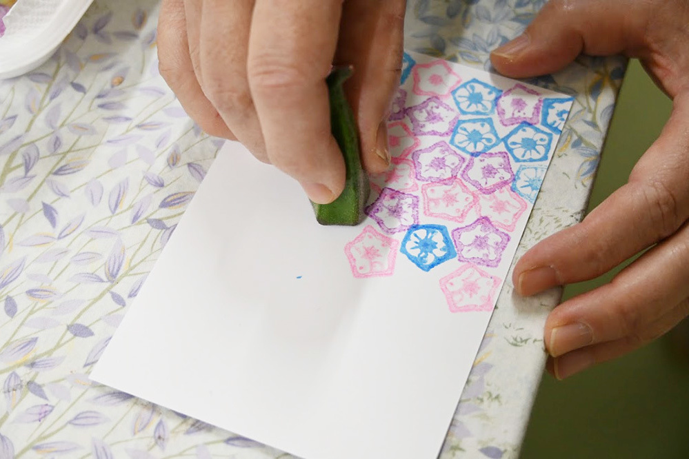雨天にも関わらず、多くの子ども達中心にカード作りを楽しんでもらえました。生野菜の切り口でいろいろな形のスタンプが作れる事に驚いていた保護者の方も。子ども達の創造力は無限で大人顔負けの素晴らしいデザインのカードに我々はたけ部員も「なるほど~、凄い!」の声が。来場者の方と共に楽しむことかできた1日になりました。