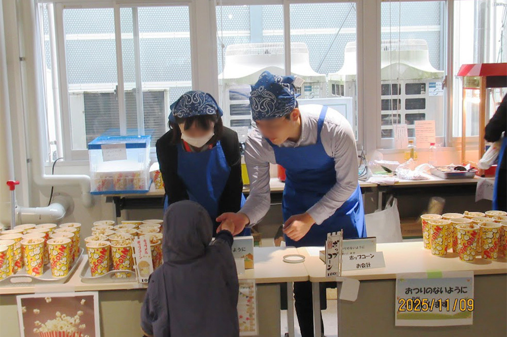 わくわくDAYへの出店は今回で4回目。管理事務室でキャラメル味・塩味ポップコーンの販売をしました。ボランティアの方のサポートもあり、たくさんのポップコーンを作り、完売!仲睦まじい親子、ご高齢の方々など、皆様の笑い声や活気が会場を包み込み、私達も高揚感のある時間を過ごせました。参加者の皆様へ感謝の気持ちでいっぱいです。