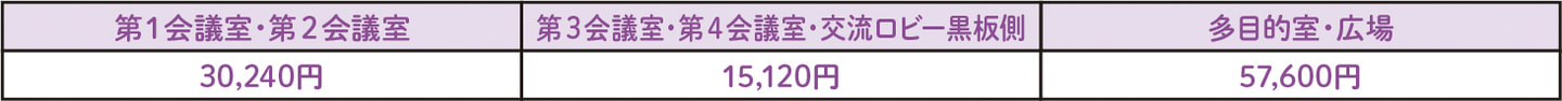 ・交流ロビー黒板側、会議室1~4…それぞれ4団体まで。