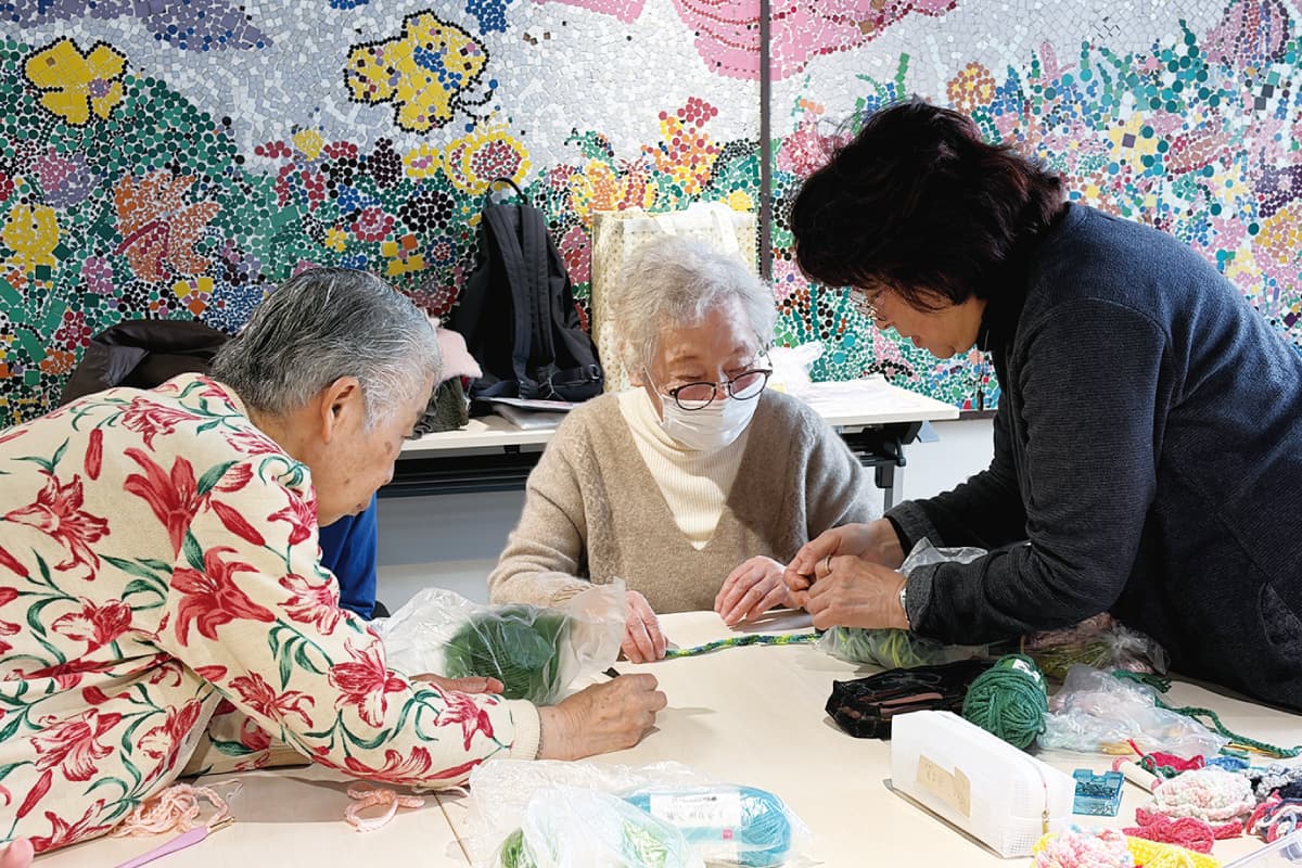 編み物をとおして、地域のみなさんと交流し、作品づくりを楽しむ活動です。