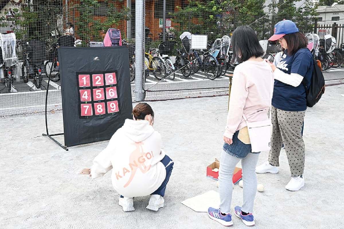 また、この日は守山保育園の園庭も一般開放されたほか、屋外では生野菜を使ったスタンプコーナー、代田児童館の中高生によるゲームコーナーもありました。そのほか、ものづくりや音楽体験、展示コーナー、カフェなど参加型から自由滞在型まで25の企画があり、テラスのあちこちに笑顔があふれました。