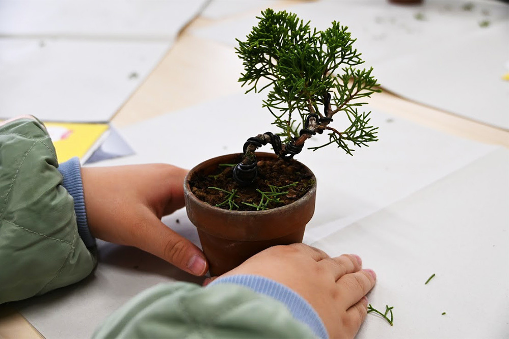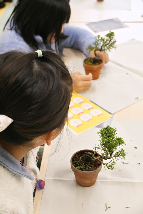 今年も盆栽づくり体験にご参加いただきありがとうございました。実際に木を曲げたり、ねじったりして触れることで、針葉樹のもつもう一つの側面(柔軟な環境適応能力)を体感していただけたのではないかと、思っております。また、これが鉢植え植物の魅力に目を向けていただくきっかけとなりましたら幸いです。
