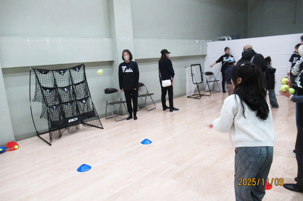 雨の中での開催となり体育館の舞台でやるのは初めてだったのでどんな感じになるか不安でした。セッティングしてみると上手くスペースを使う事が出来ました。野球を経験したこともない子たちもいたと思うので、これをきっかけに野球に興味を持ってくれればと思います。
