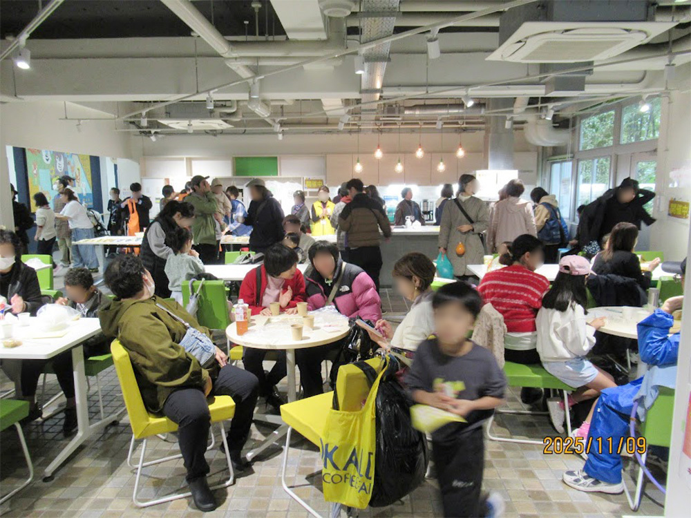 美まもりやまカフェでは、麦茶の無料提供やまもりやま工房のコーヒーと焼き菓子販売を行いました。温かい麦茶とコーヒーは大好評。沢山の方に利用していただき、ほっと一息つける、地域交流の場となりました。
