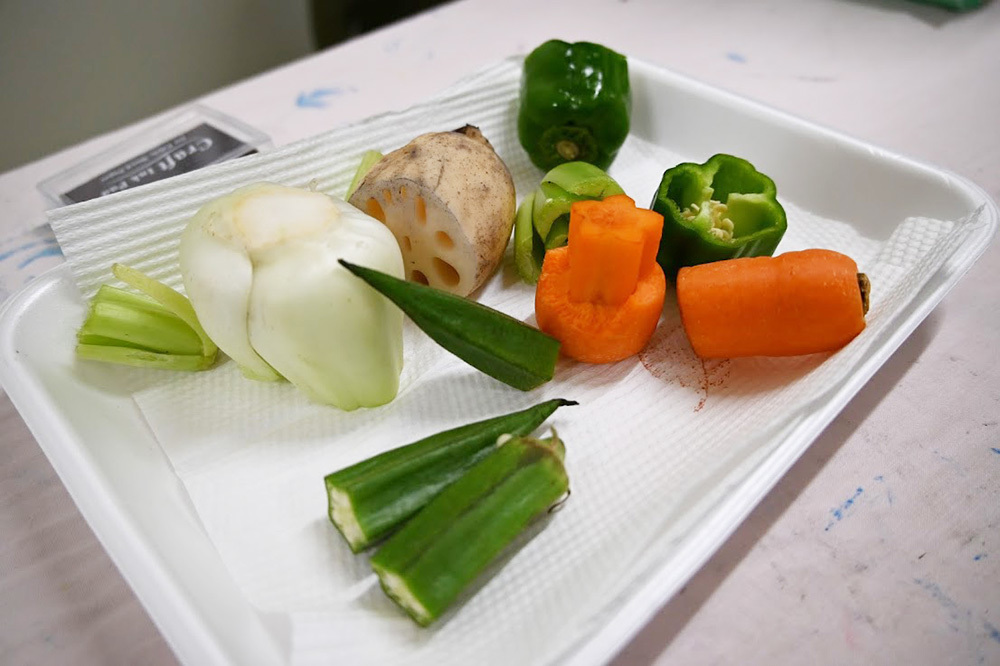 雨天にも関わらず、多くの子ども達中心にカード作りを楽しんでもらえました。生野菜の切り口でいろいろな形のスタンプが作れる事に驚いていた保護者の方も。子ども達の創造力は無限で大人顔負けの素晴らしいデザインのカードに我々はたけ部員も「なるほど~、凄い!」の声が。来場者の方と共に楽しむことかできた1日になりました。